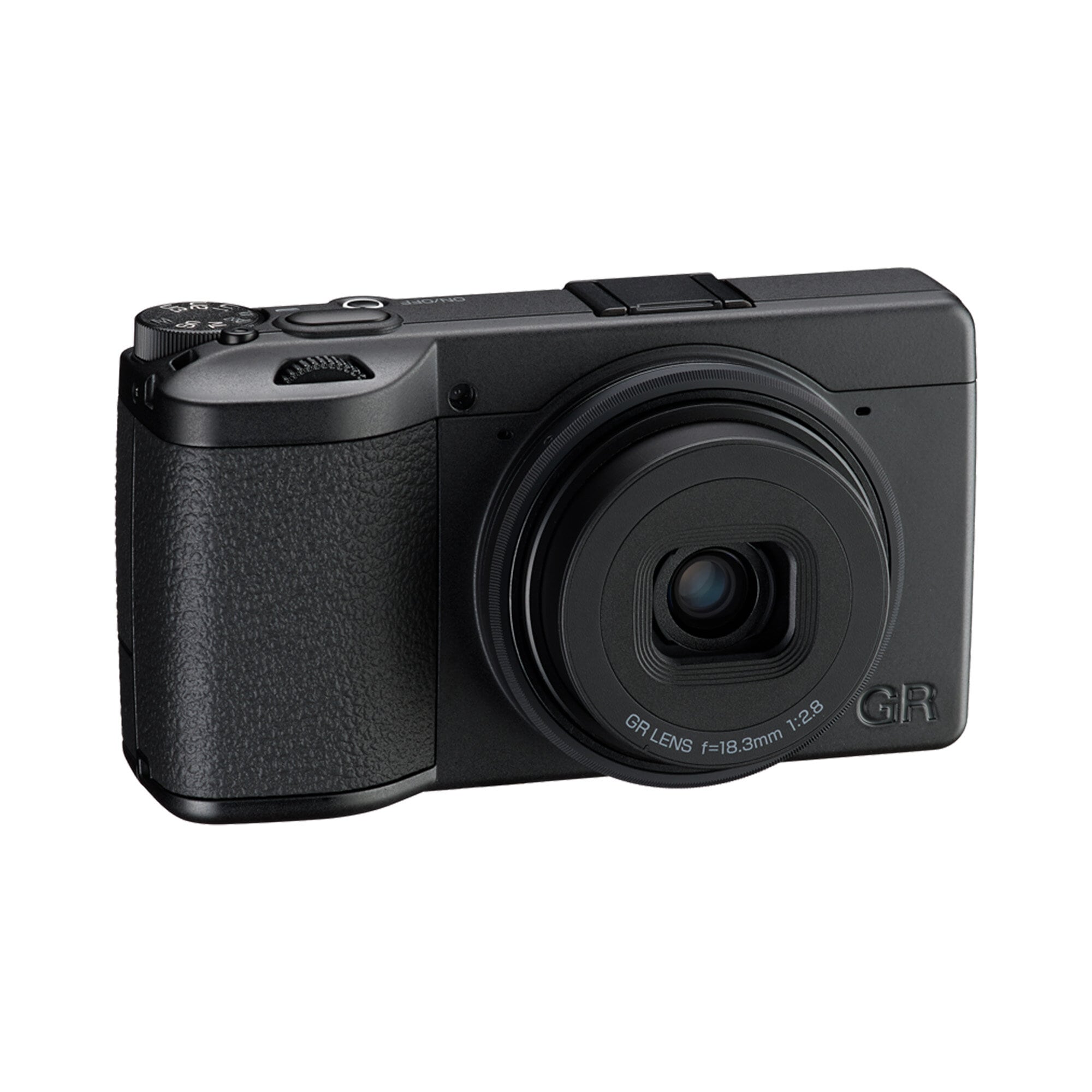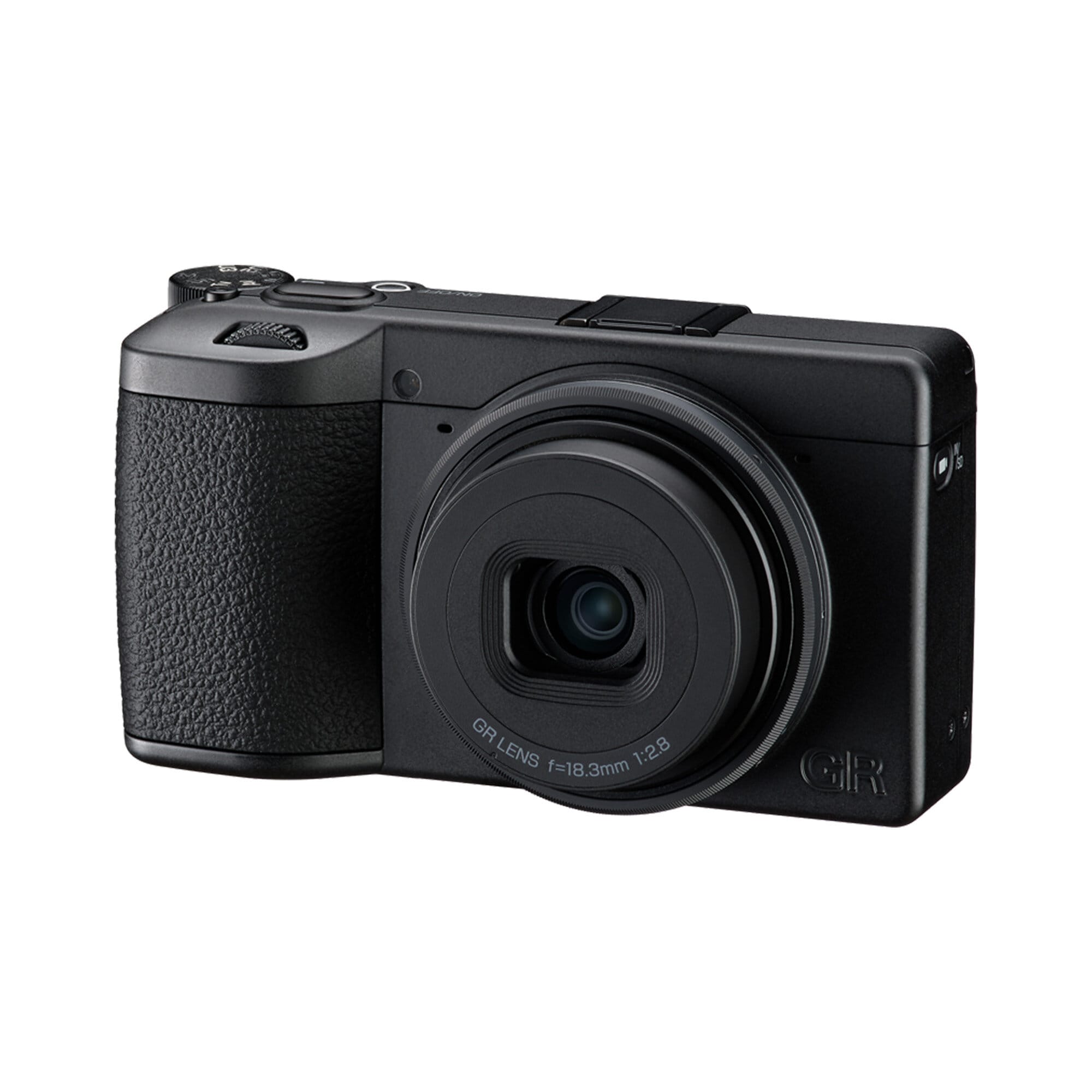 Kameran är utformad kring det välkända GR-objektivet med en brännvidd på 18,3 mm F2,8 (motsvarande cirka 28mm i småbildsformat). Den optiska konstruktionen består av 7 element i 5 grupper, inklusive 3 asfäriska element, vilket ger hög skärpa över hela bildytan. I monokrom fotografering bidrar detta till att strukturer och detaljer förblir tydliga utan att bilden upplevs som artificiell.