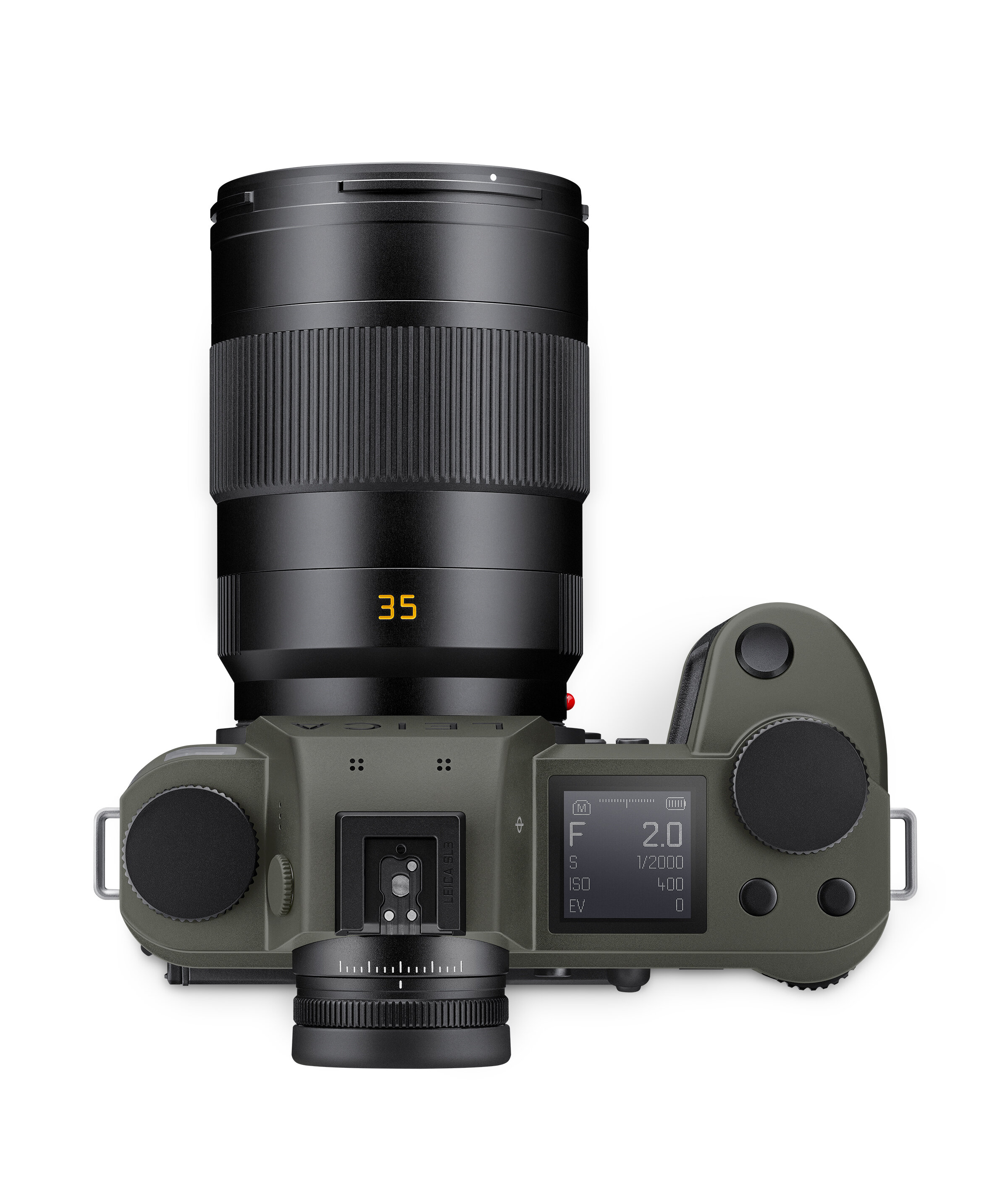 Samma Leica SL3 med en reptålig grön finish och diskretare look. Utan den röda leica logon och mattare detaljer är den byggd för tuffare miljöer och arbete ute på fält.