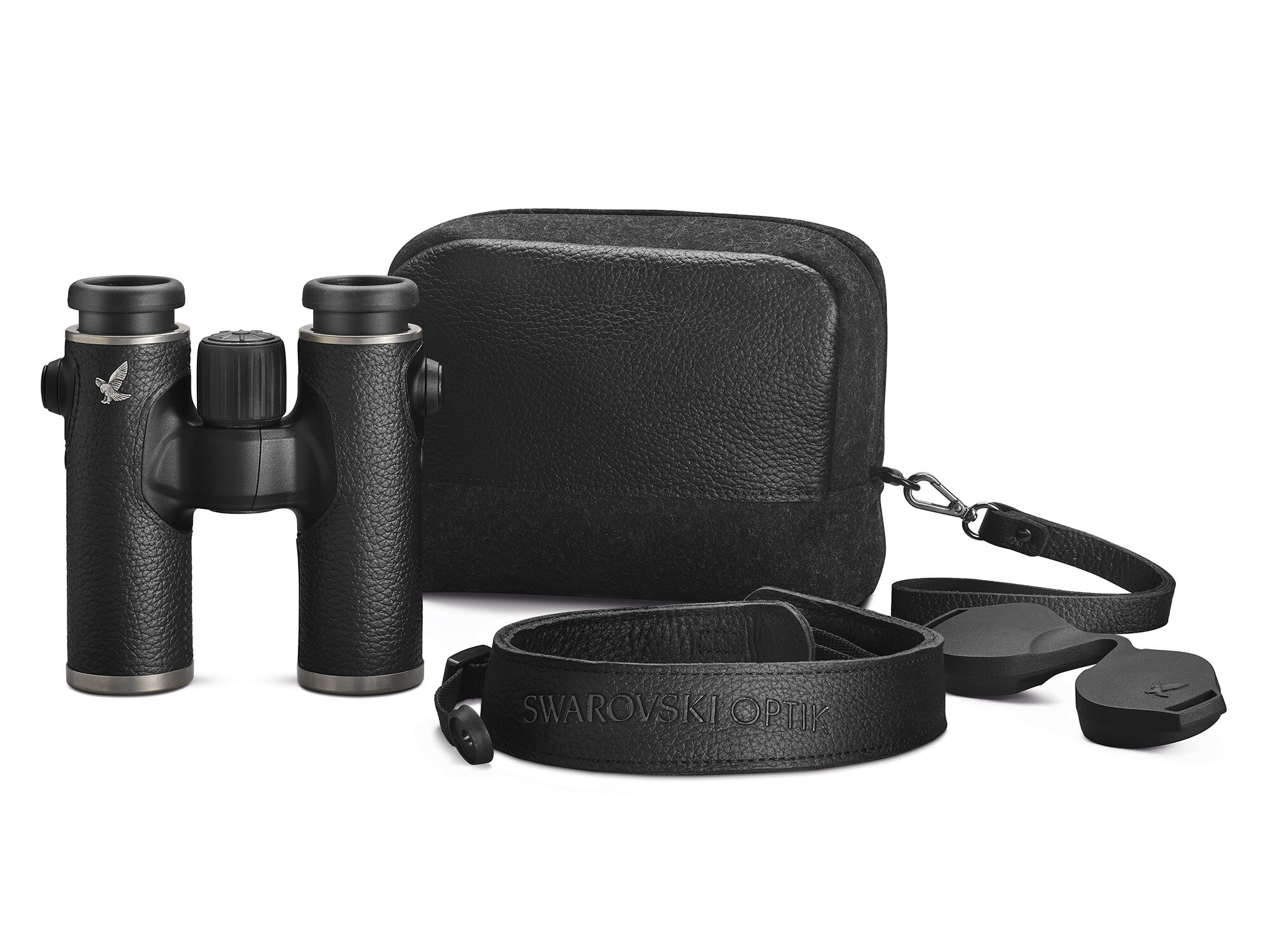 Råmaterialet i den klassiska läderklädseln kommer från hållbara producenter i Europa och är garvat med vegetabiliska medel. Swarovski har också tagit hänsyn till regional hållbarhet när det kommer till tillbehören. Den medföljande väskan är tillverkad av tyskproducerad lodenull och nappa med ett innerfoder i bomull.