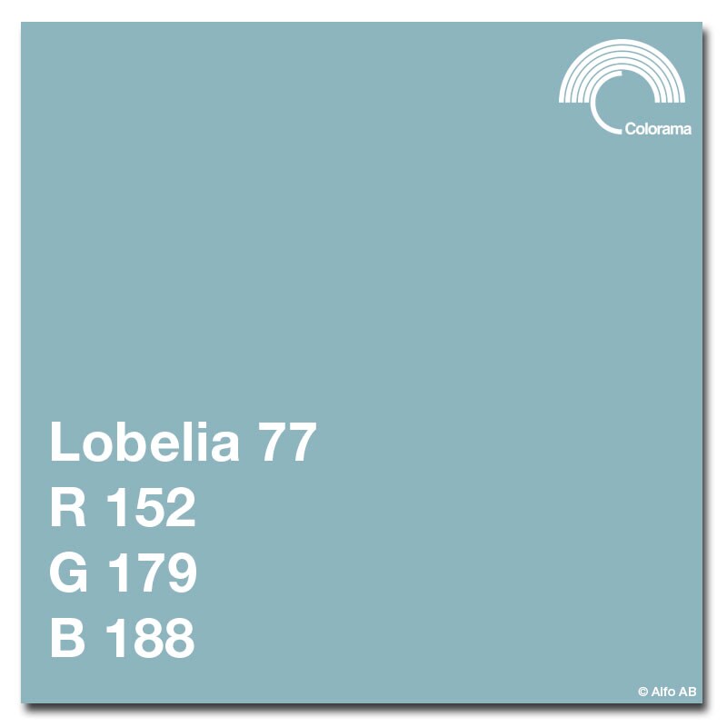 Colorama 2.72 x 11m Lobelia, bakgrundspapper för fotografering. Bakgrunden är monterad på stabil papperskärna med innerdiameter 5,4 cm. Colorama bakgrundspapper ger mycket liten reflektion och är tillverkat av kraftigt papper vilket ger god hållbarhet.