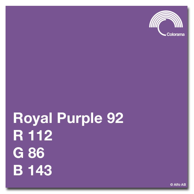 Colorama 2.72 x 11m Royal Purple, bakgrundspapper för fotografering. Bakgrunden är monterad på stabil papperskärna med innerdiameter 5,4 cm. Colorama bakgrundspapper ger mycket liten reflektion och är tillverkat av kraftigt papper vilket ger god hållbarhet.