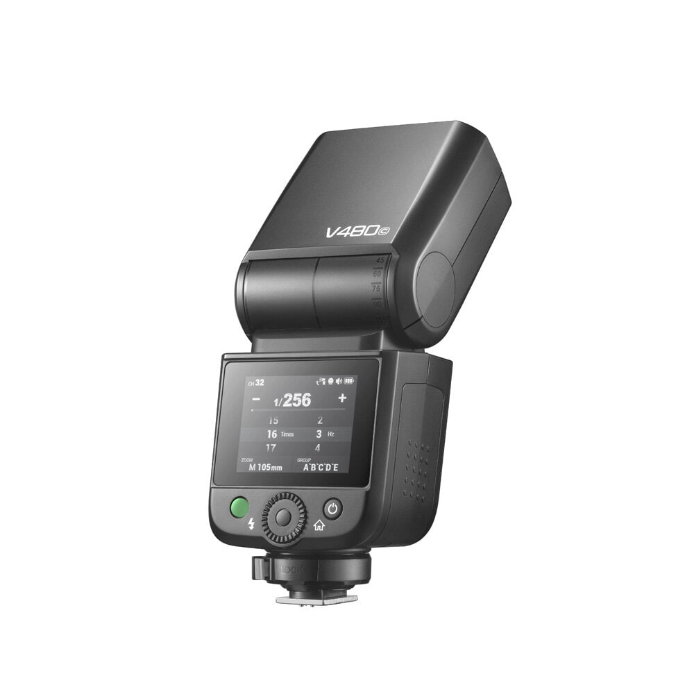 Den 2,0-tums färgpekskärmen och taktila knappar ger dig smidig och exakt kontroll över inställningarna, även mitt i ett stressigt uppdrag. Du kan snabbt ändra inställningar utan att tappa flytet i fotograferingen. Dessutom visar skärmen i realtid blixtens effektiva räckvidd, vilket gör det enklare att jobba i små utrymmen eller vid indirekt ljussättning.