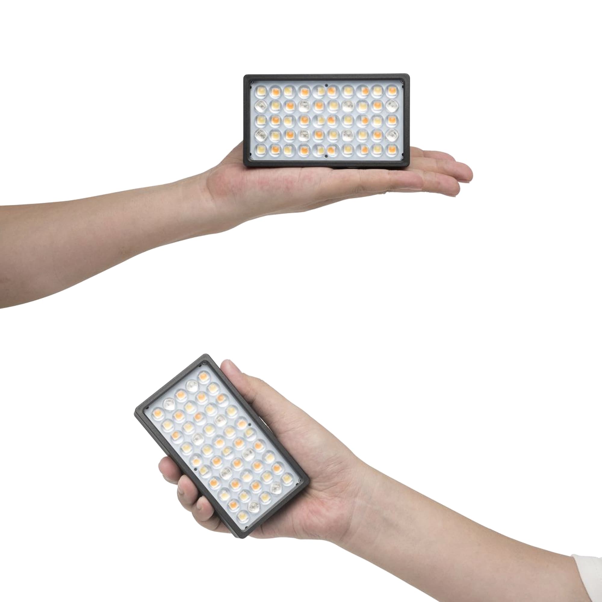 Lampan har perfekt fickstorlek och ger en kraftfull effekt (upp till 7480 lux@0,3m 7500 K, ungefär 8459 lumen) som ger tillräckligt ljus för att använda var som helst! Lys upp ett rum, ge effektfull stämning till en video eller använd som ficklampa vid sena nätter.