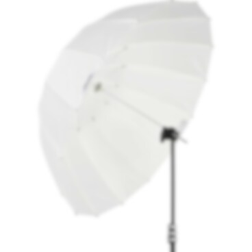 Alla Profotos djupa paraplyer har en djupare parabolisk form än paraplyer normalt har. Ju djupare formen är, desto bättre kontroll får du över ljusspridningen. Du kan även fokusera och forma ljuset genom att helt enkelt skjuta paraplyskaftet framåt eller bakåt i hållaren. Vid användning av genomskinliga paraplyer avfyrar du blixten genom paraplyet. Paraplyet sprider ljuset och gör det mjukare genom att minska kontrasten. Genomskinliga paraplyer passar perfekt för att skapa ett mjukt ljus när du är mycket nära motivet.