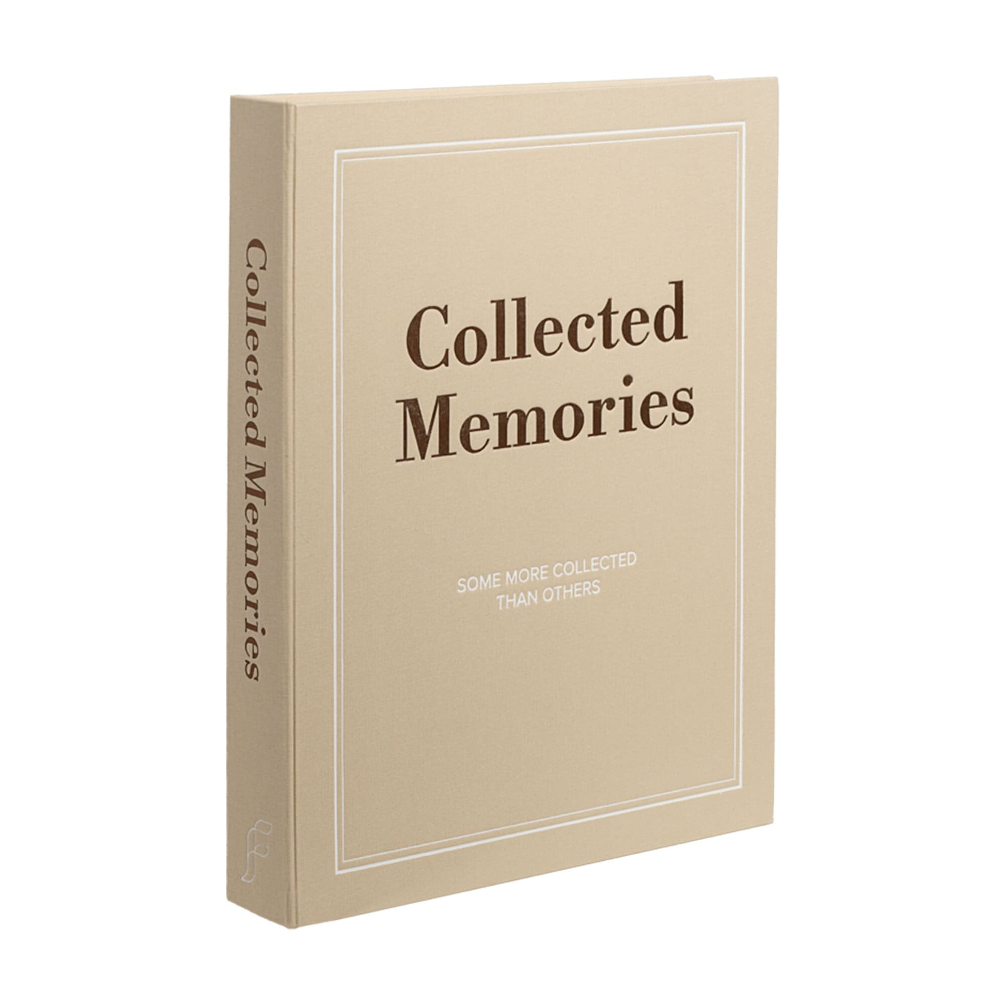 Med sitt eleganta textilomslag och den fyndiga inskriptionen "Collected Memories (some more collected than others)" på framsidan kombinerar det mjuk elegans med en touch av humor som gör att det sticker ut på alla soffbord.