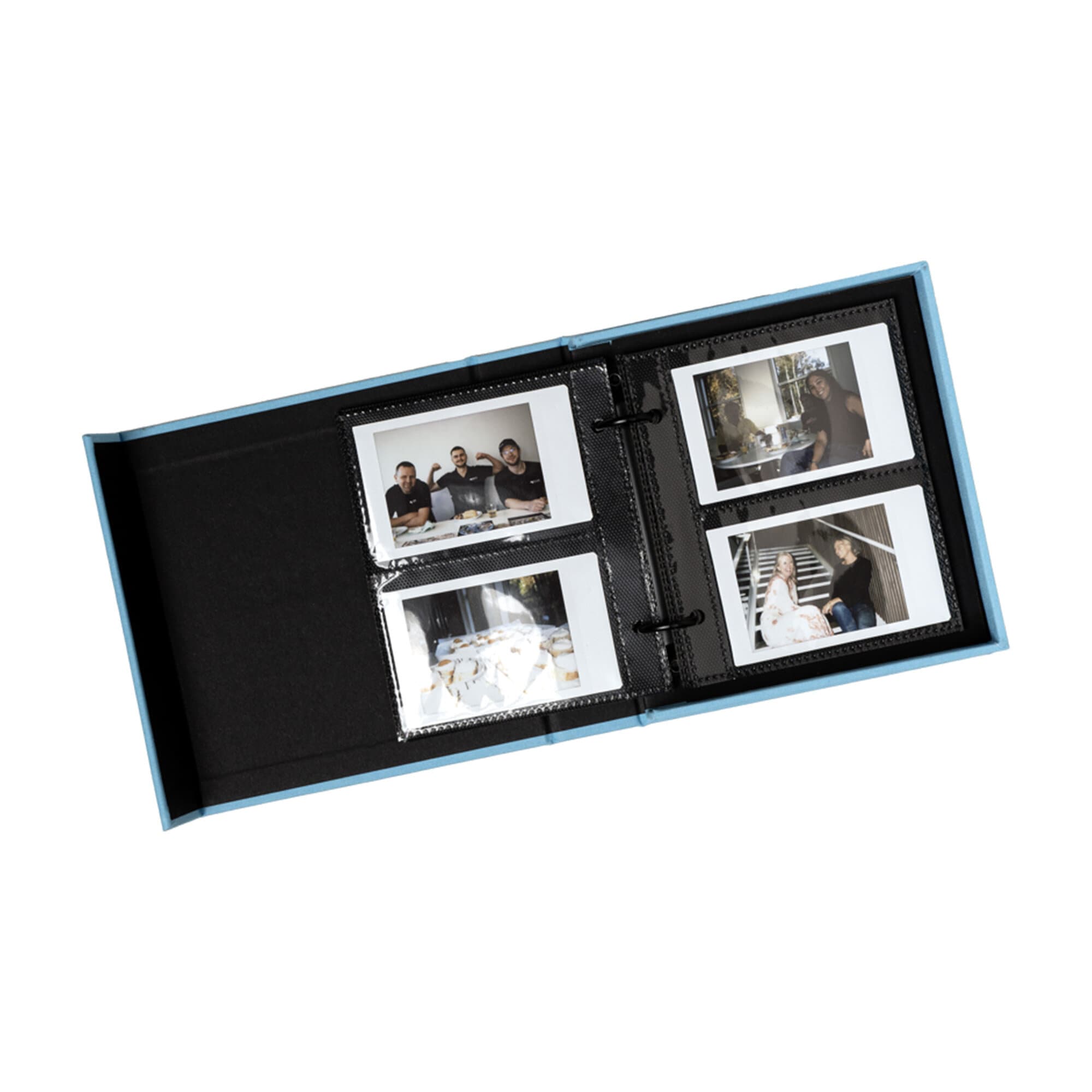 Inuti hittar du 15 fickblad som rymmer upp till 60 Instax Mini-foton - precis rätt storlek för att samla uppriktiga leenden, snabba äventyr och vardagsmagi.