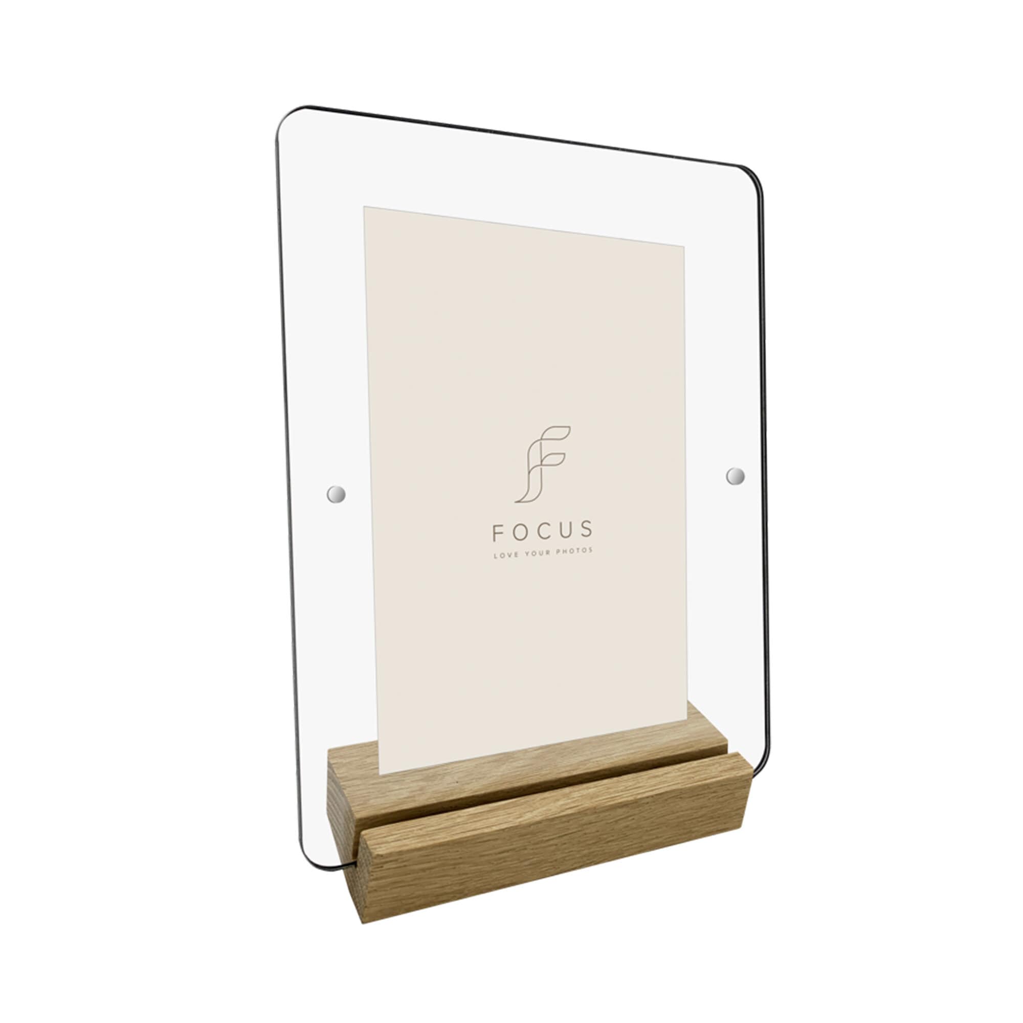 För enkelt in ditt favoritfoto eller konsttryck mellan akrylplattorna och skjut in i träbasen - inga verktyg eller montering krävs.