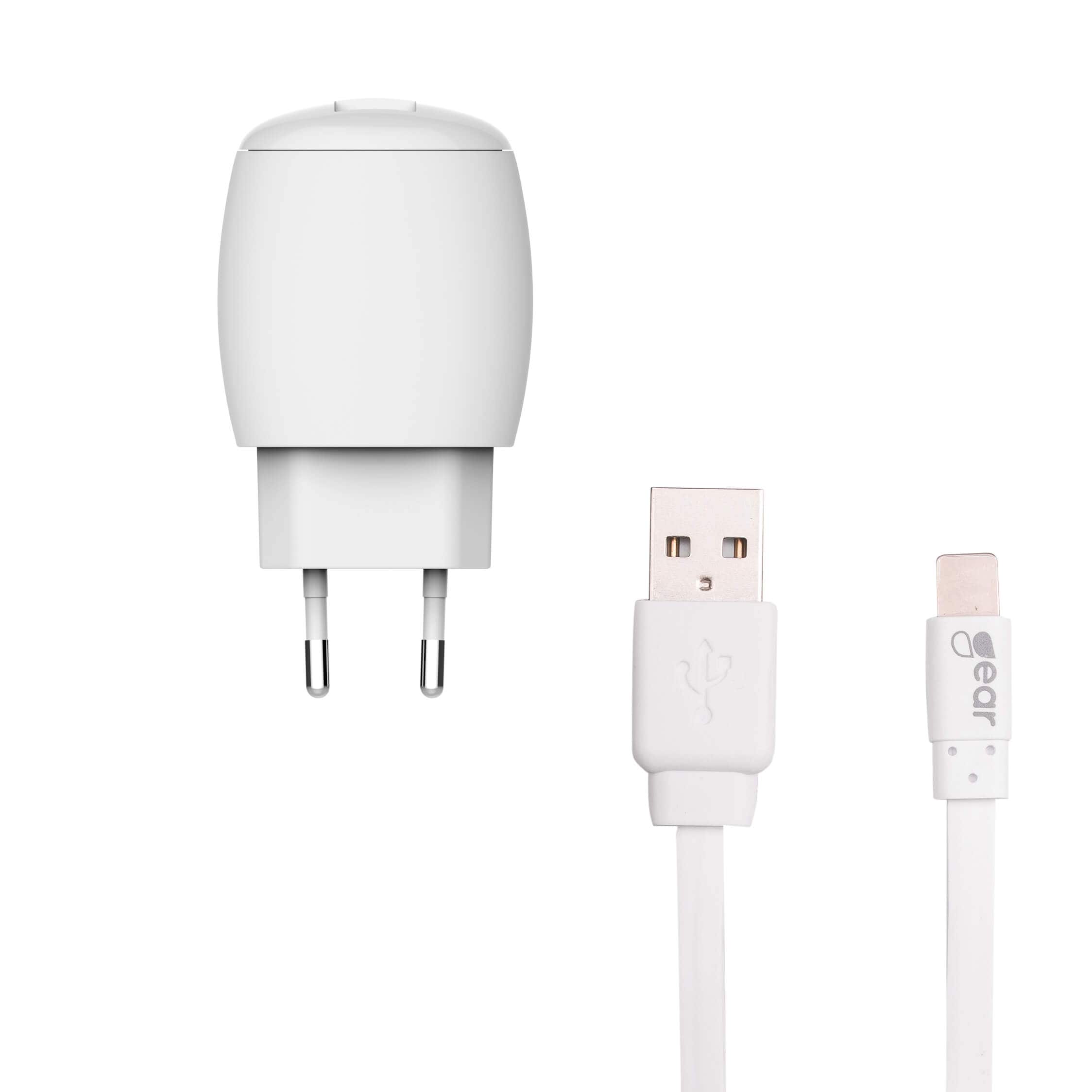 - Gear Laddare 220V 1xUSB 1A Vit MicroUSB Kabel platt 1m