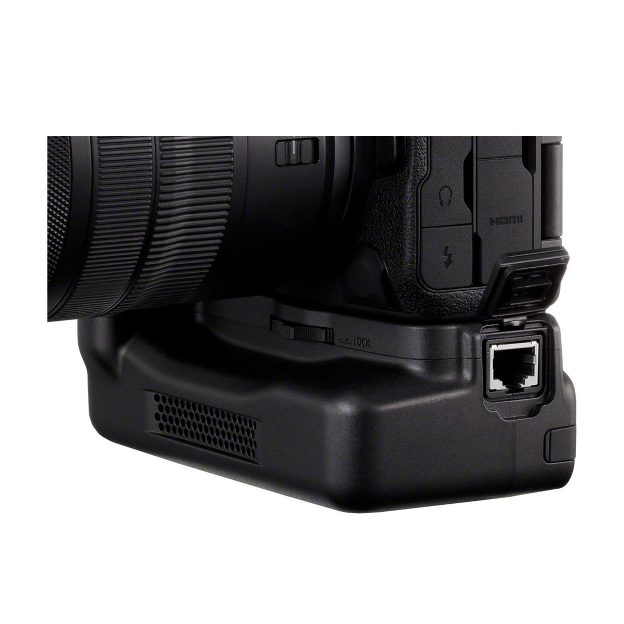 Canon CF-R20EP batterigrepp designat för Canon R5 Mark II. Batterigreppet ger dig både extra batterikapacitet men även extra kylning tack vare greppets inbyggda kylfläkt som håller kameran sval även under långa tagningar. Greppet har även en inbyggd Ethernet port som ger dig möjligheten att få fast internet till din kamera.
