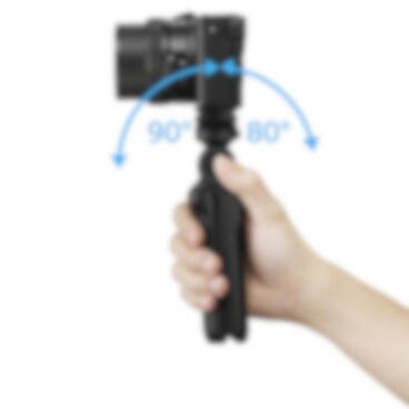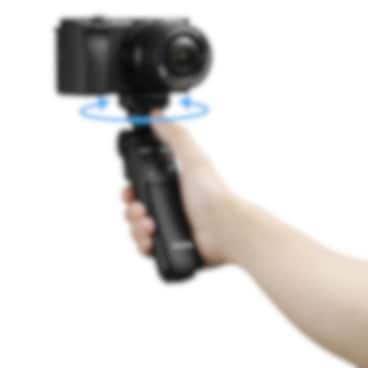 Handtaget är konstruerat för optimal stabilitet och komfort, oavsett om det fästs vid en kompaktkamera eller en spegellös kamera med utbytbart objektiv. När du håller i handtaget är fjärrkontrollknapparna lättillgängliga för smart, intuitiv användning.