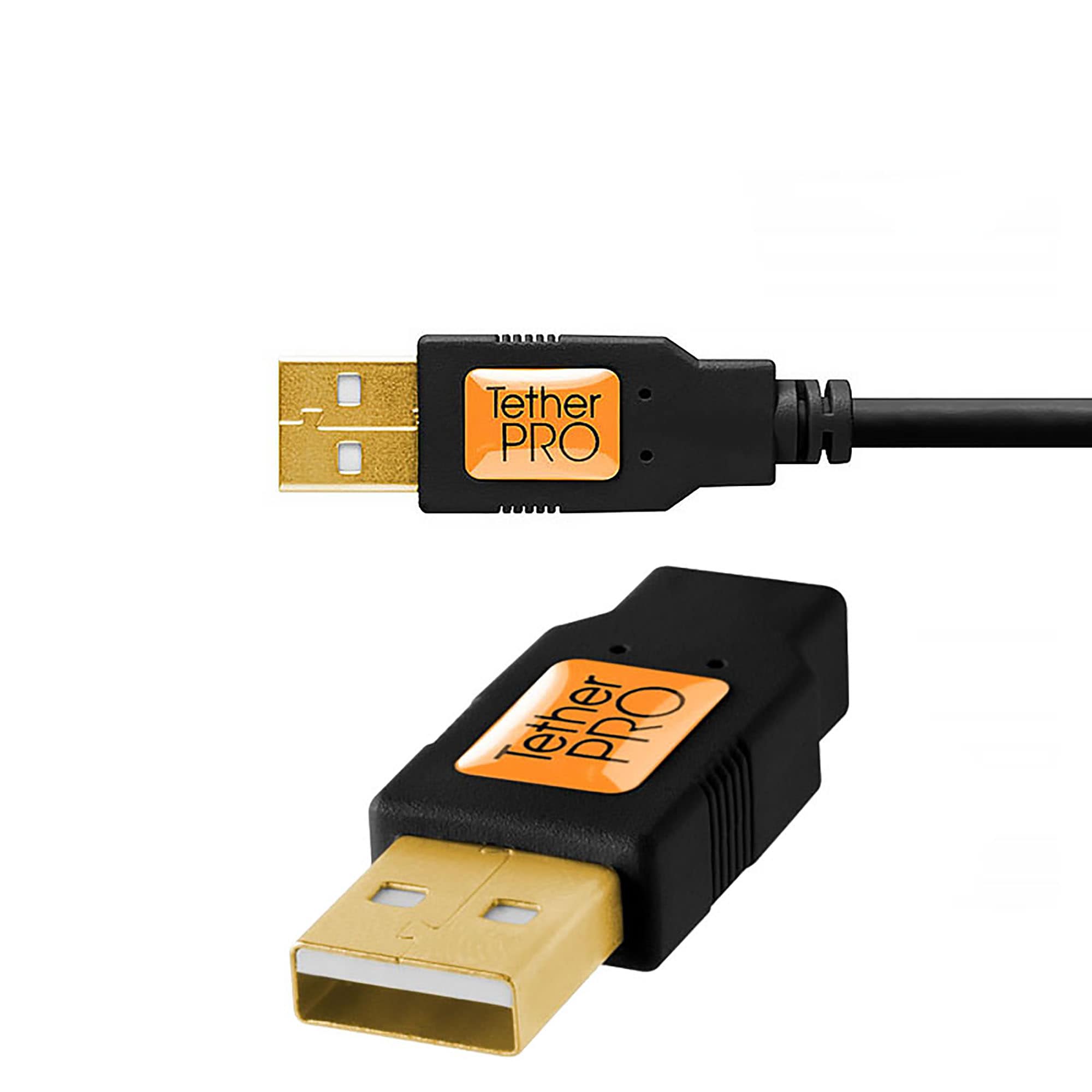 Kabeln ansluts till kamera eller annan utrustning med en USB Micro-B 5-pin kontakt samt till dator via standard USB A kontakt. Längd 4,6 meter, för längre avstånd använd Tether Tools aktiva förlängningskablar samt vid behov TetherBoost förstärkare.