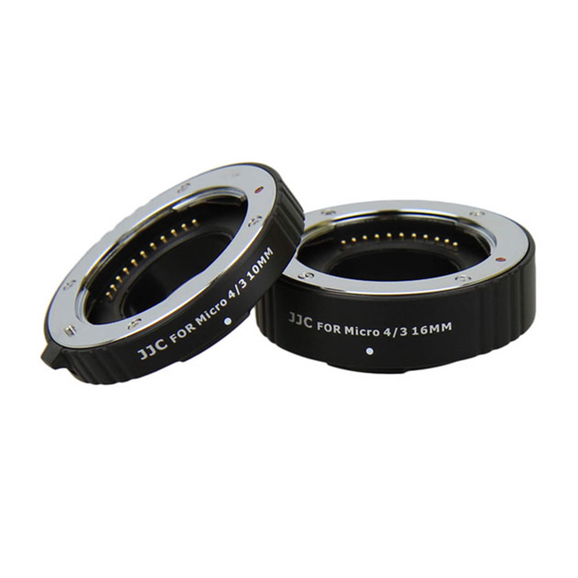 JJC Mellanringssats för Olympus/ Panasonic M4/3 består av 2 st mellanringar (10 mm &16 mm), som kan användas var för sig eller i kombination med varandra. Mellanringssatsen används för närbildsfotografering och sätts mellan kamerahuset och objektivet. Mellanringssatsen har elektroniska kopplingar mellan objektivet och kamerahuset. Ljusförlusten som uppstår i mellanringen tar kamerans mätare automatiskt hänsyn till. Mellanringssatsen har M4/3 fattning.
