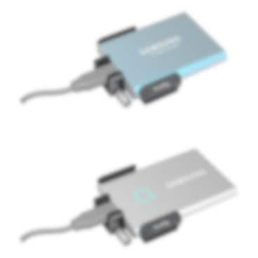 Dess inneliggande heltäckande gummikuddar håller SSD-enheten säkert på plats och förhindrar repor.