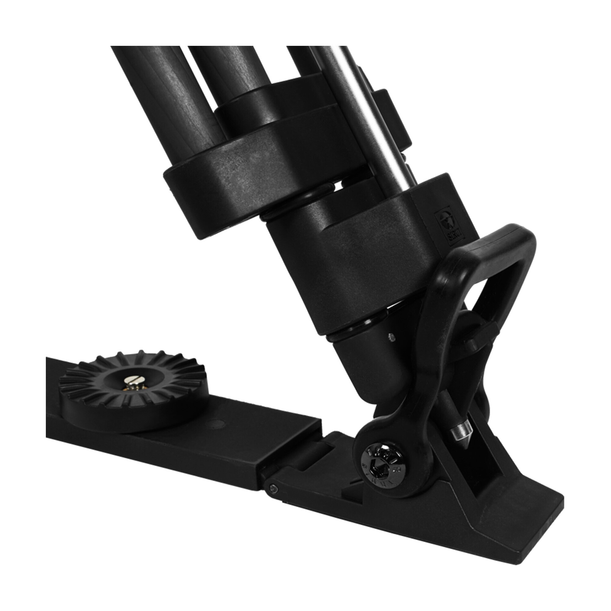 Stativet inkluderar en groundspreader med vridlås för att justera benens vinkel och integrerade spikfötter för användning på mjuk mark. Ett avtagbart handtag med ARRI-fäste gör det lätt att transportera stativet och anpassa det med andra tillbehör.