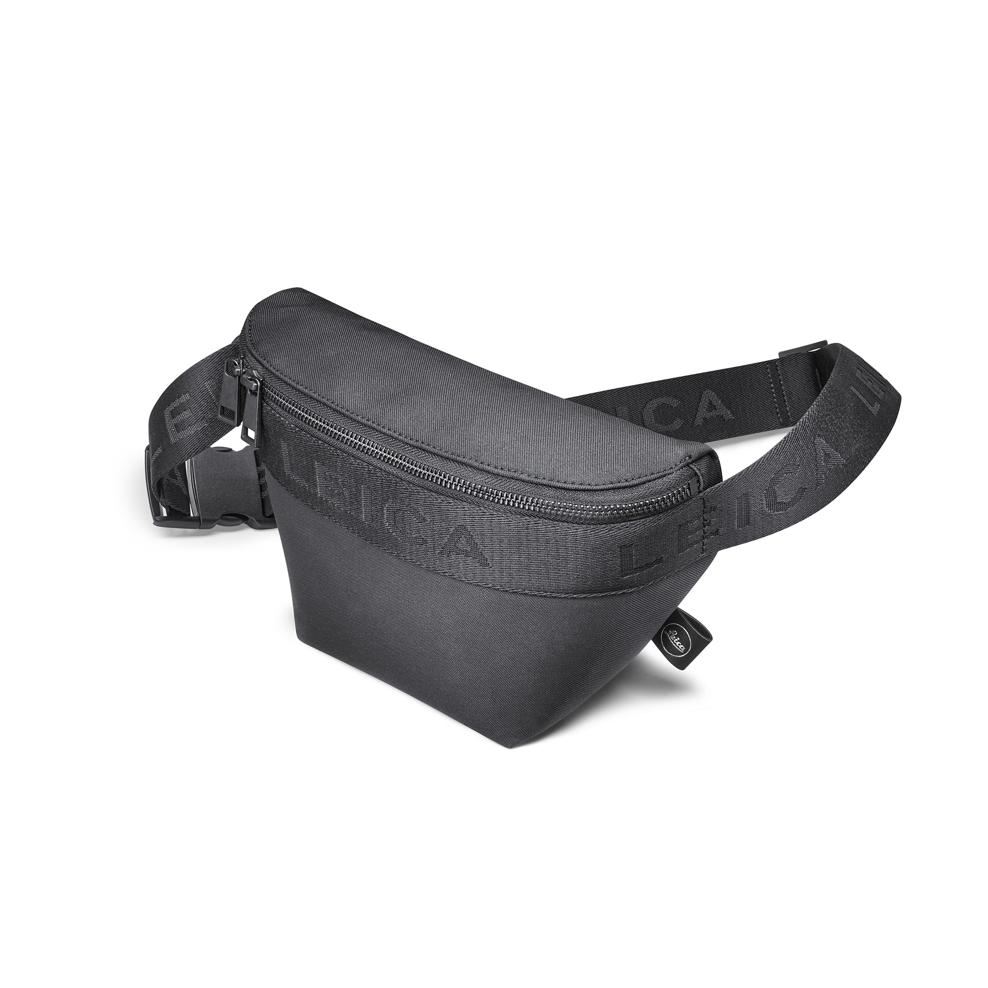 Tillverkad av återvunnen polyester, ger den svarta midjeväskan gott om plats för en Leica SOFORT 2, en D-Lux eller en kamera från Q-serien.