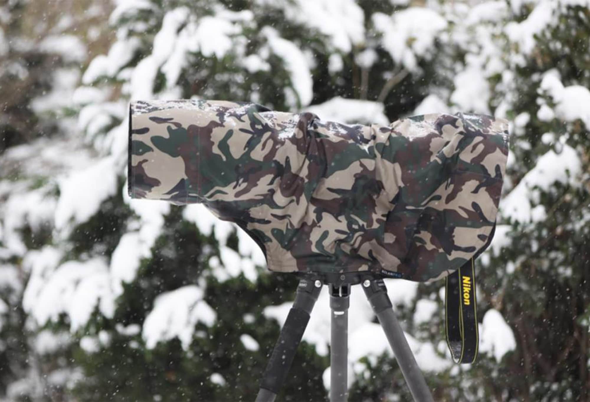 Ett kamouflerat rengskydd som skyddar din kamera och optik från regn! Skyddet är designat för tele objektiv och kommer i flera storlekar.